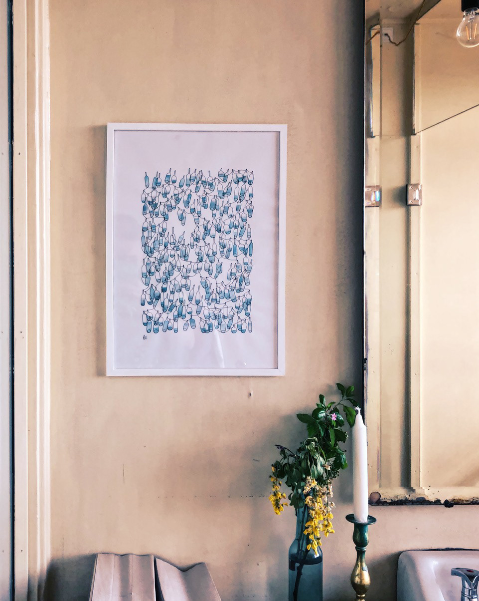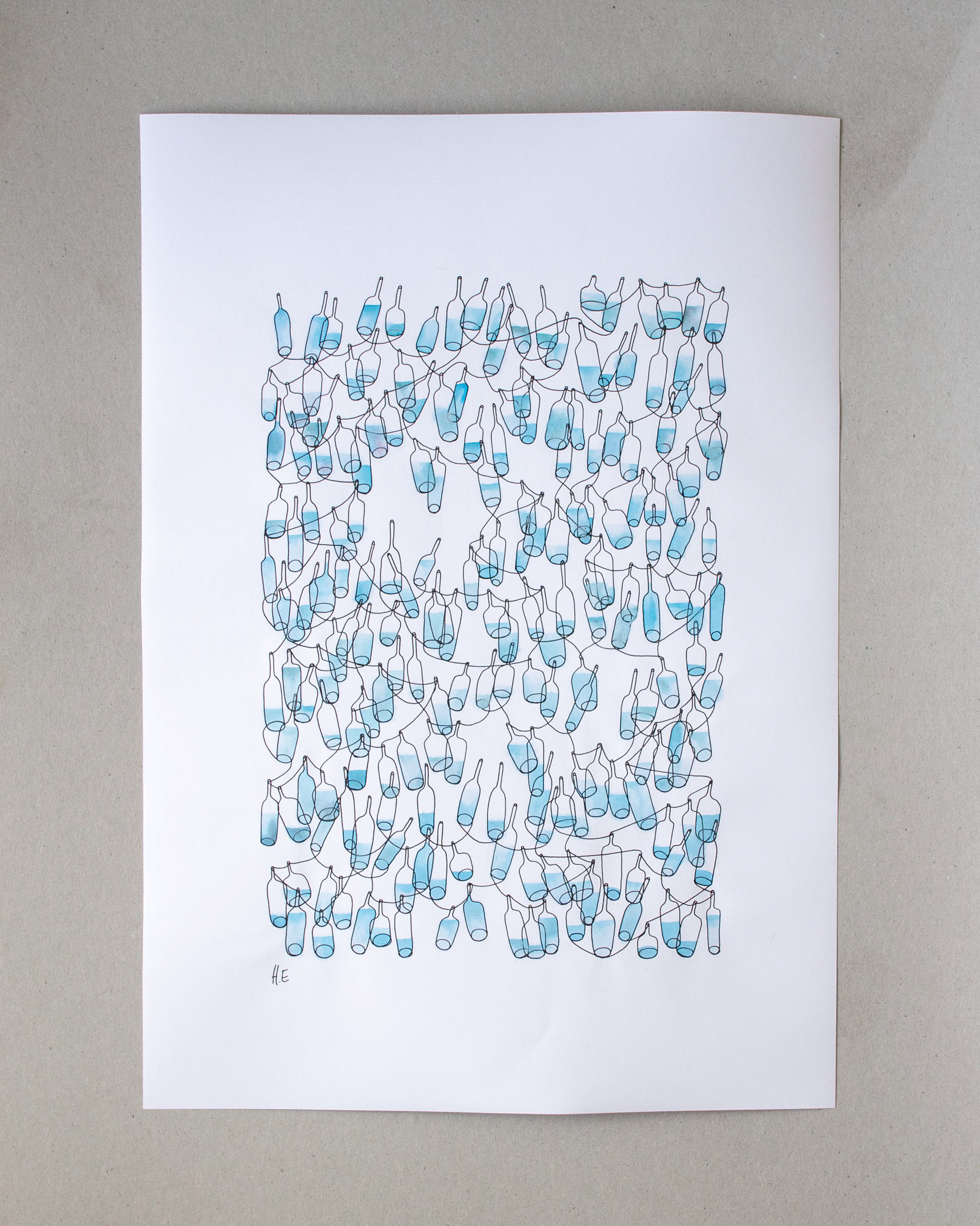 , then filled the bottles differently for each one. Creating something half print, half original.